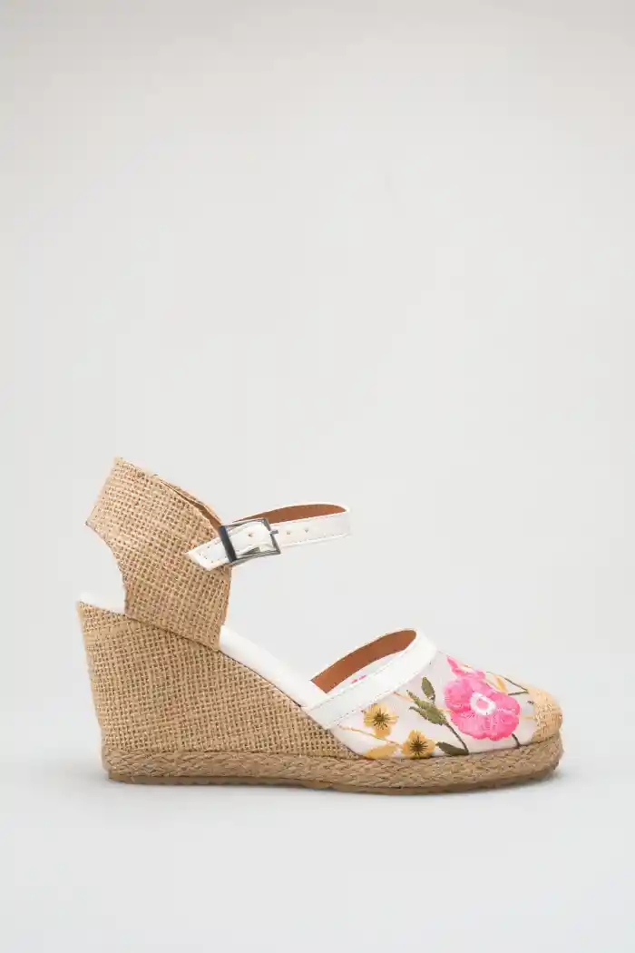 Papatya Nakış Beyaz Cilt Kadın Dolgu Topuklu Ayakkabı