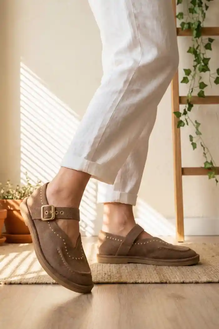 Vizon Süet Kadın Taş Detaylı Loafer Ayakkabı