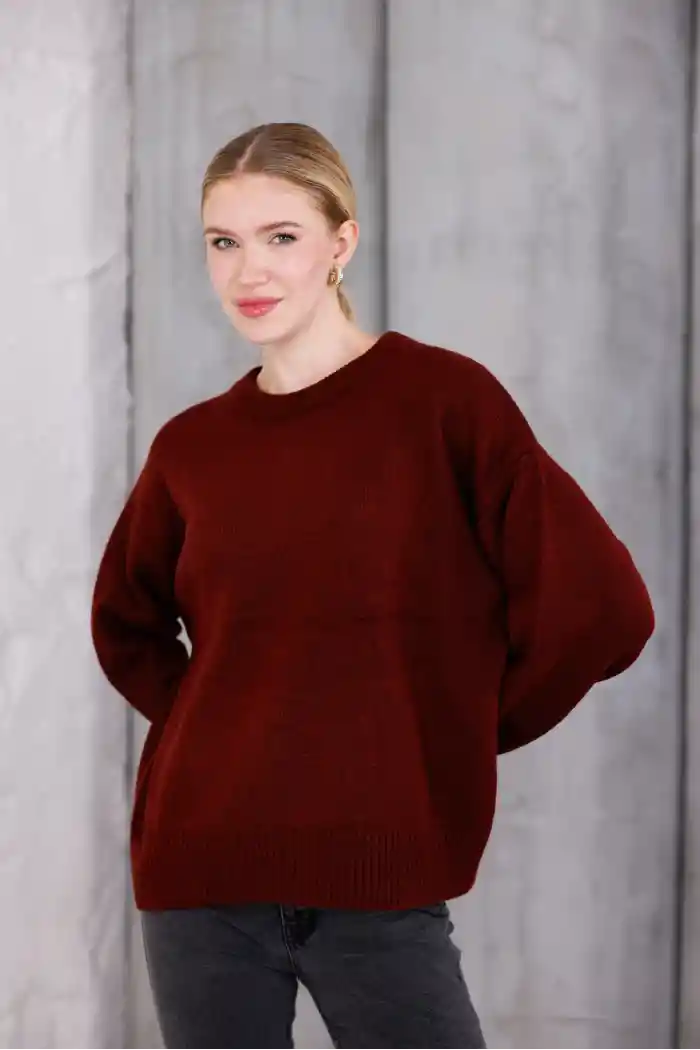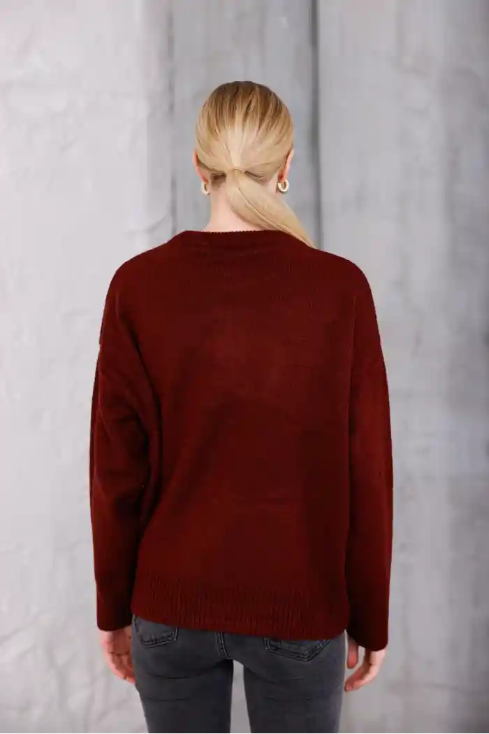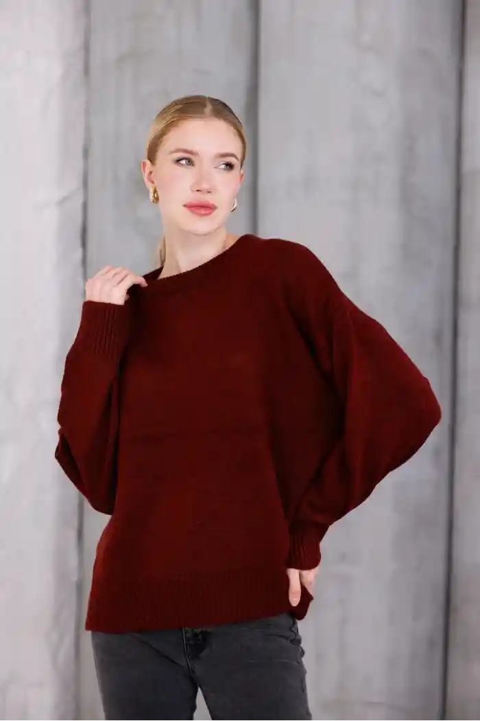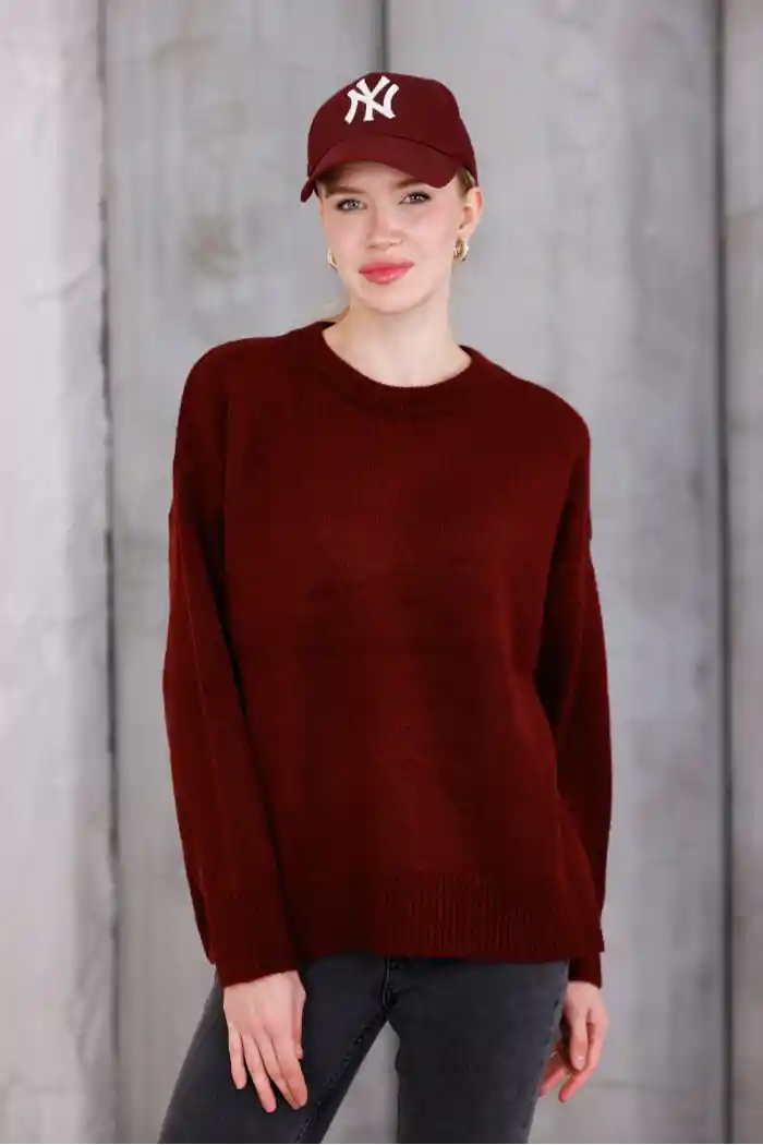 Bordo Kadın Bisiklet Yaka Oversize Triko Kazak