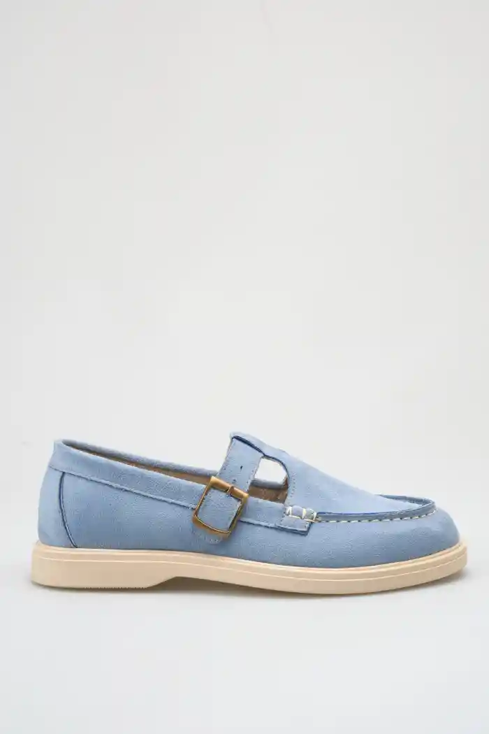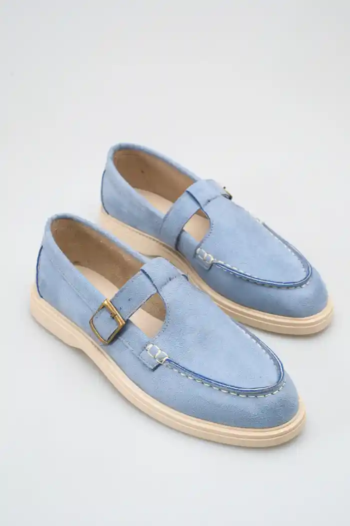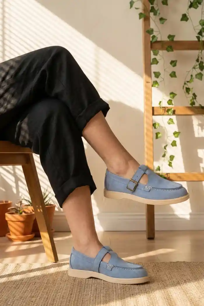Bebe Mavi Süet Kadın Kemerli Loafer Ayakkabı