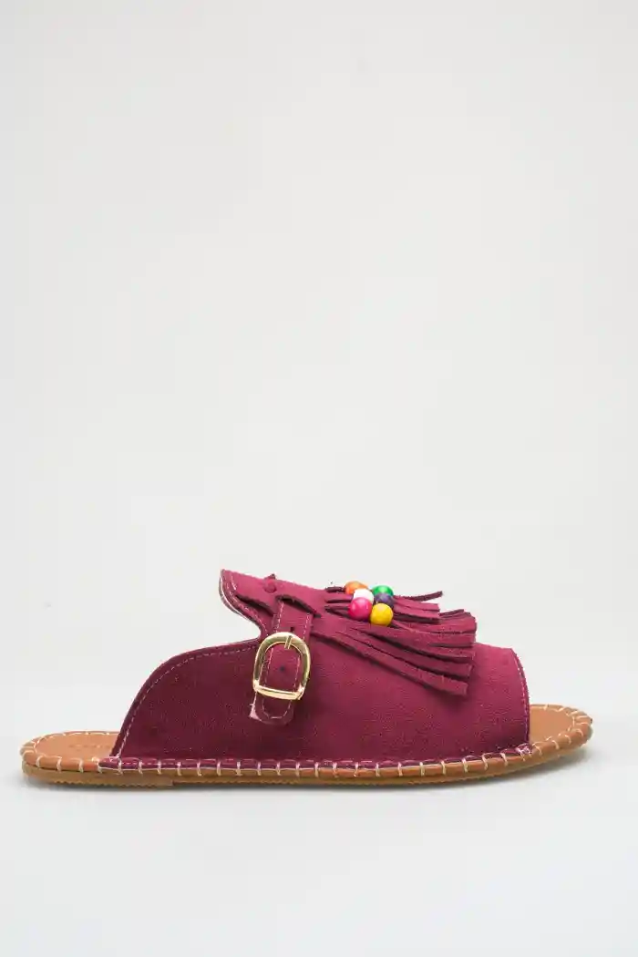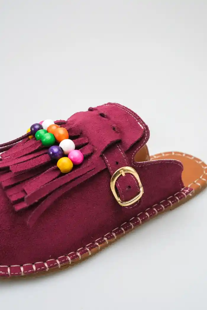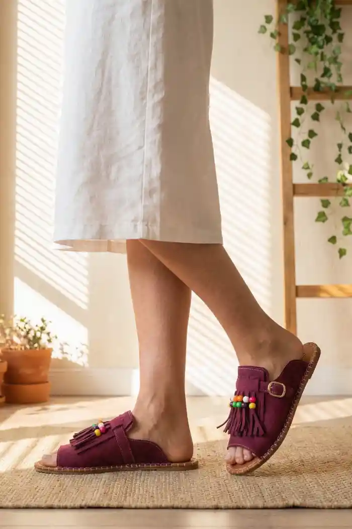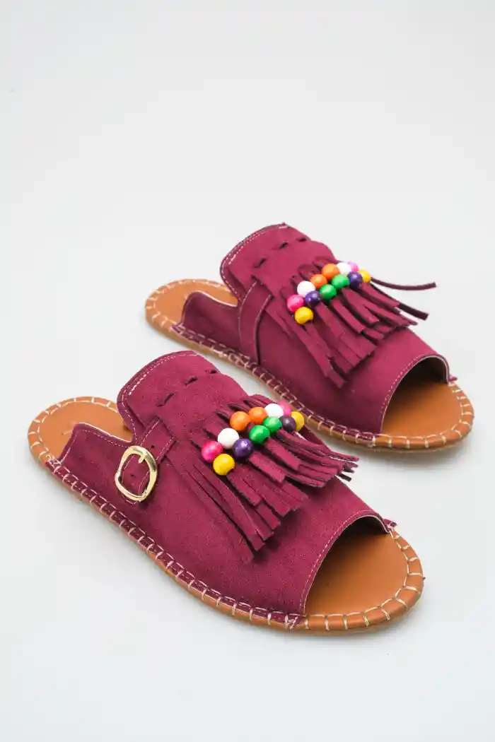 Bordo Süet Kadın Boncuklu Püsküllü Terlik