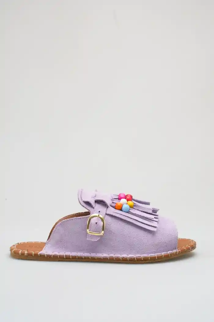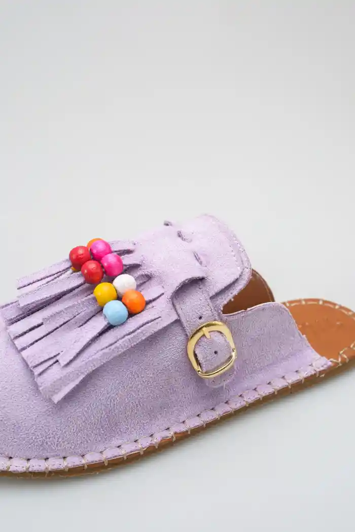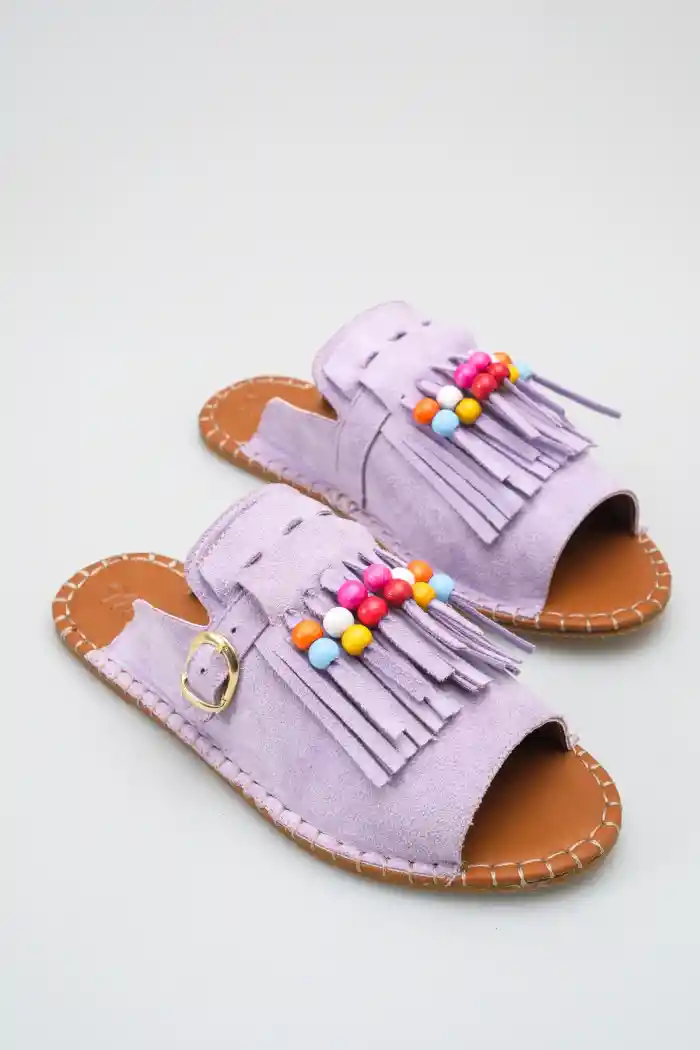 Lila Süet Kadın Boncuklu Püsküllü Terlik