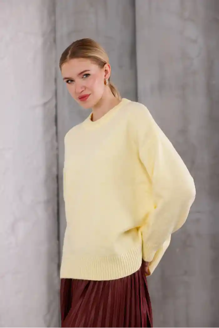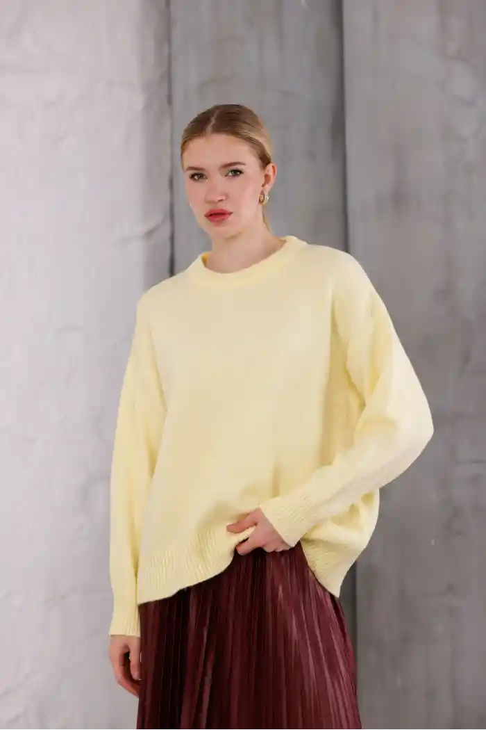 Sarı Bisiklet Yaka Oversize Triko Kazak