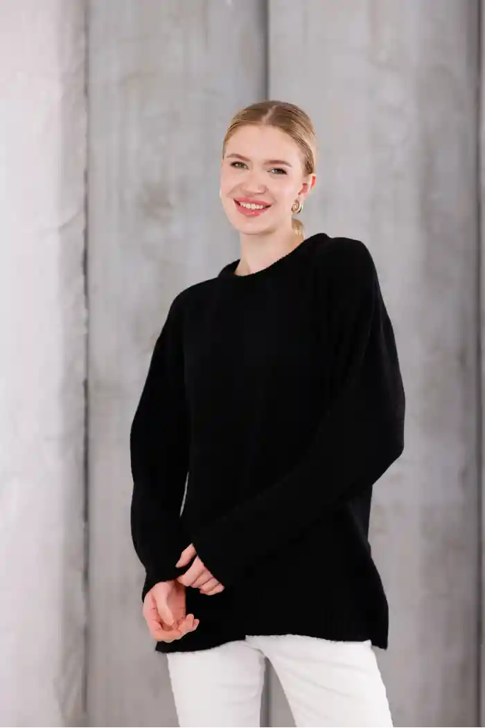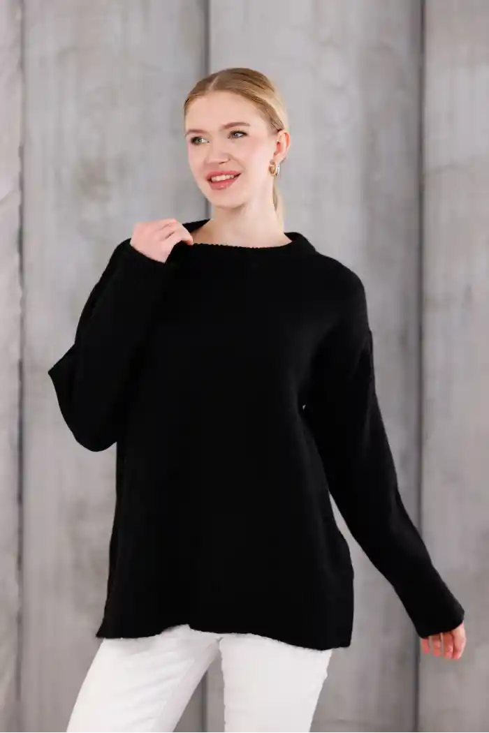 Siyah Bisiklet Yaka Oversize Triko Kazak