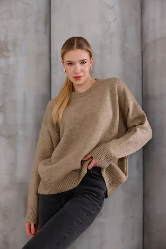 Vizon Bisiklet Yaka Oversize Triko Kazak