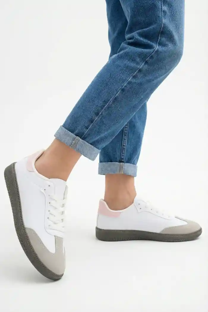 Beyaz-Pudra Kadın Çizgisiz Sneaker