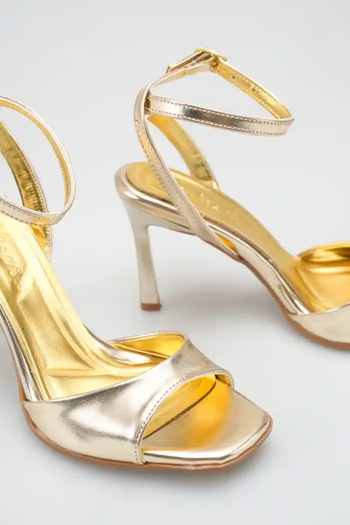 Altın Kadın İnce Topuklu Abiye Ayakkabı