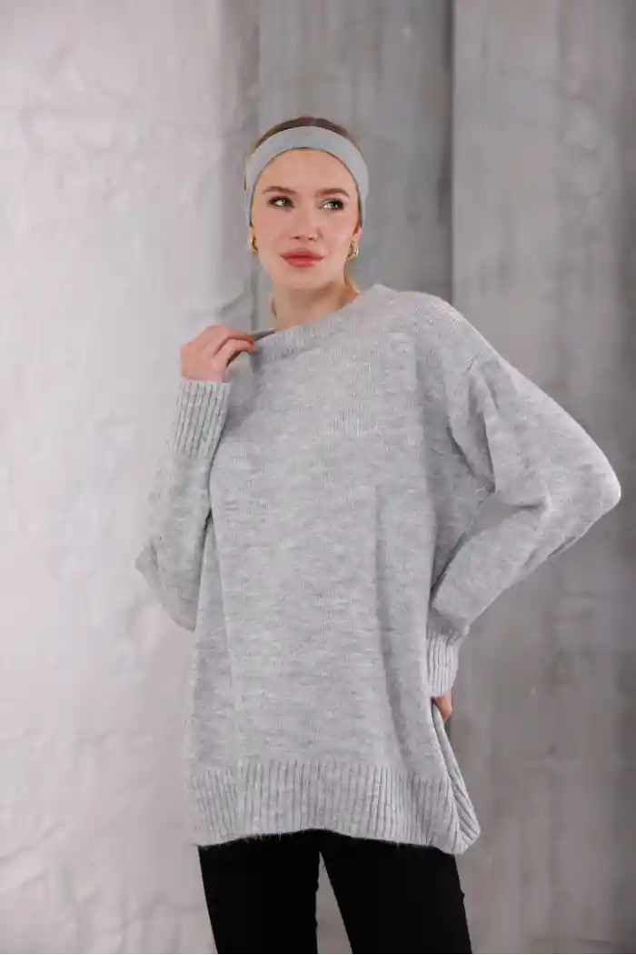 Füme Kadın Bisiklet Yaka Oversize Triko Kazak