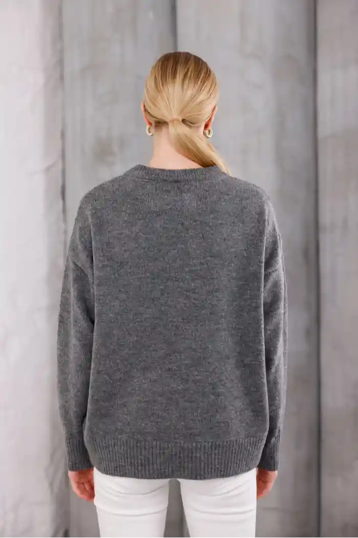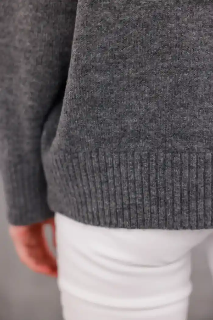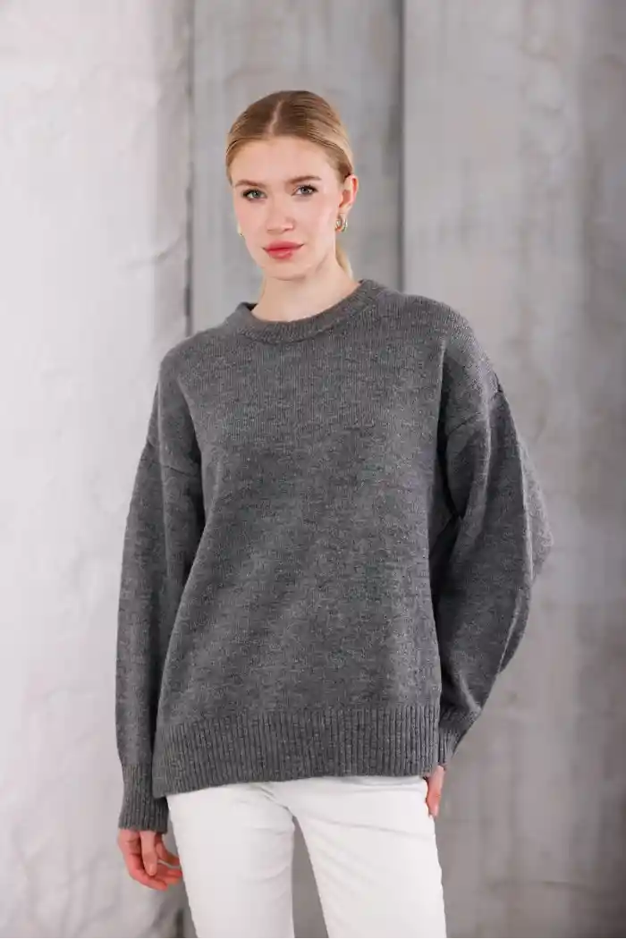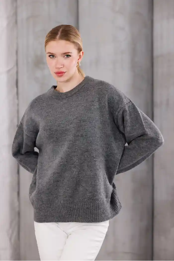 Gri Kadın Bisiklet Yaka Oversize Triko Kazak