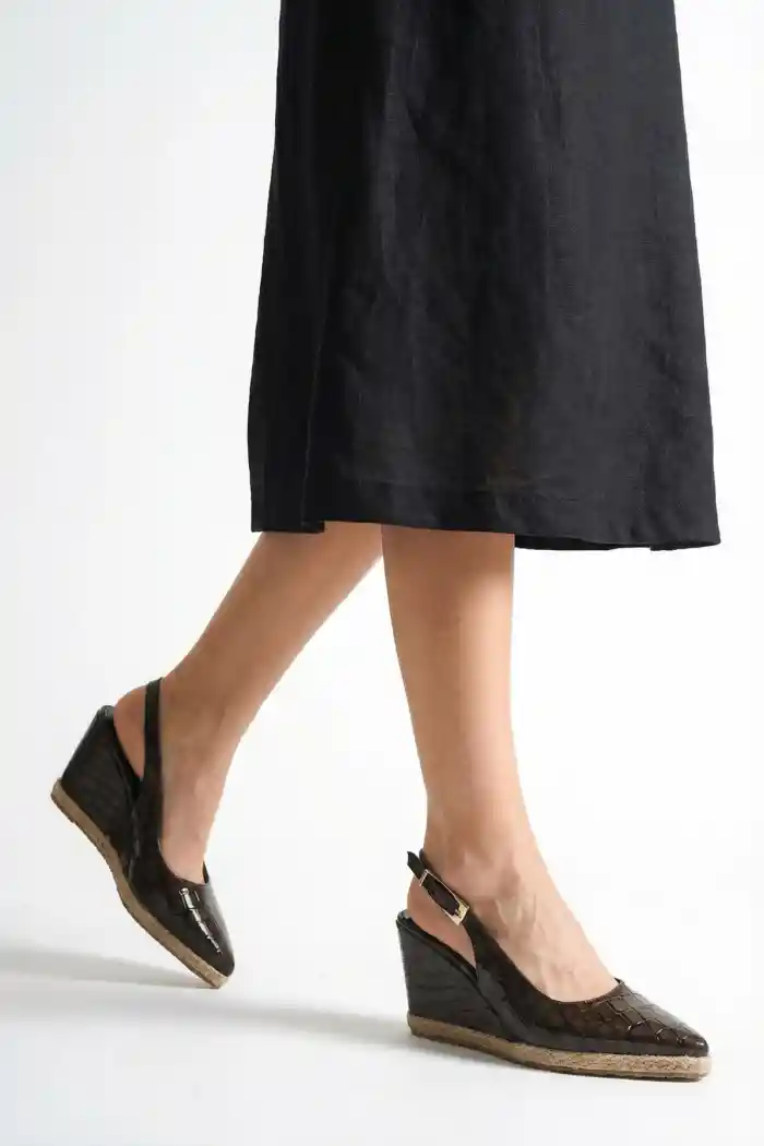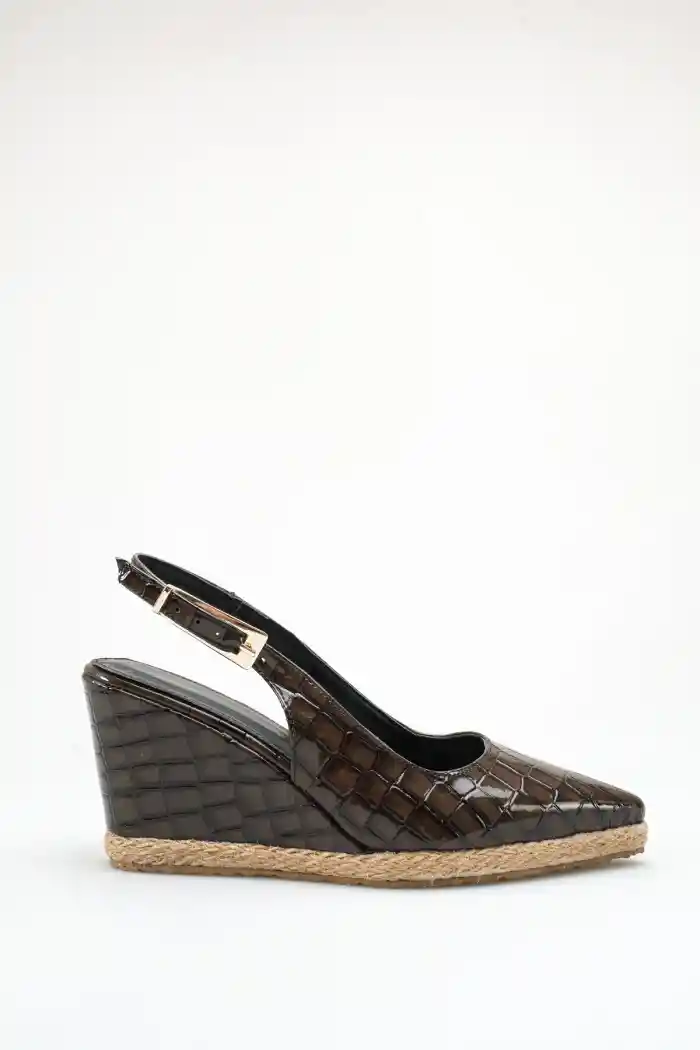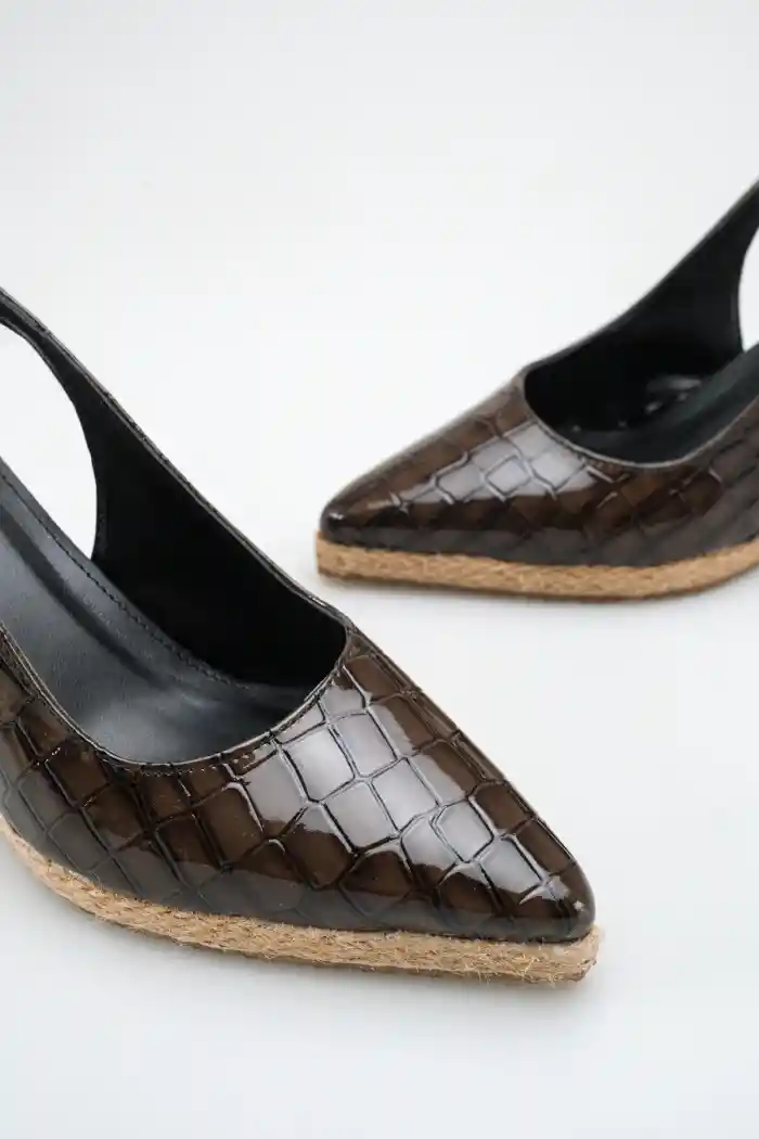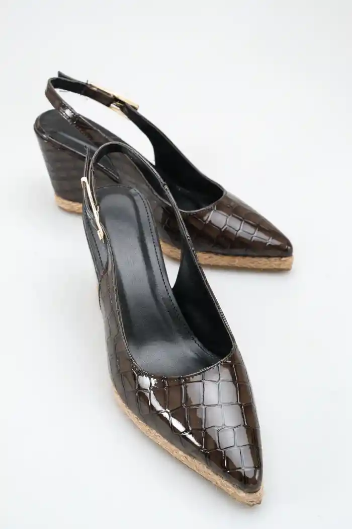 Kahve Kroko Kadın Sivri Burun Dolgu Topuklu Sandalet