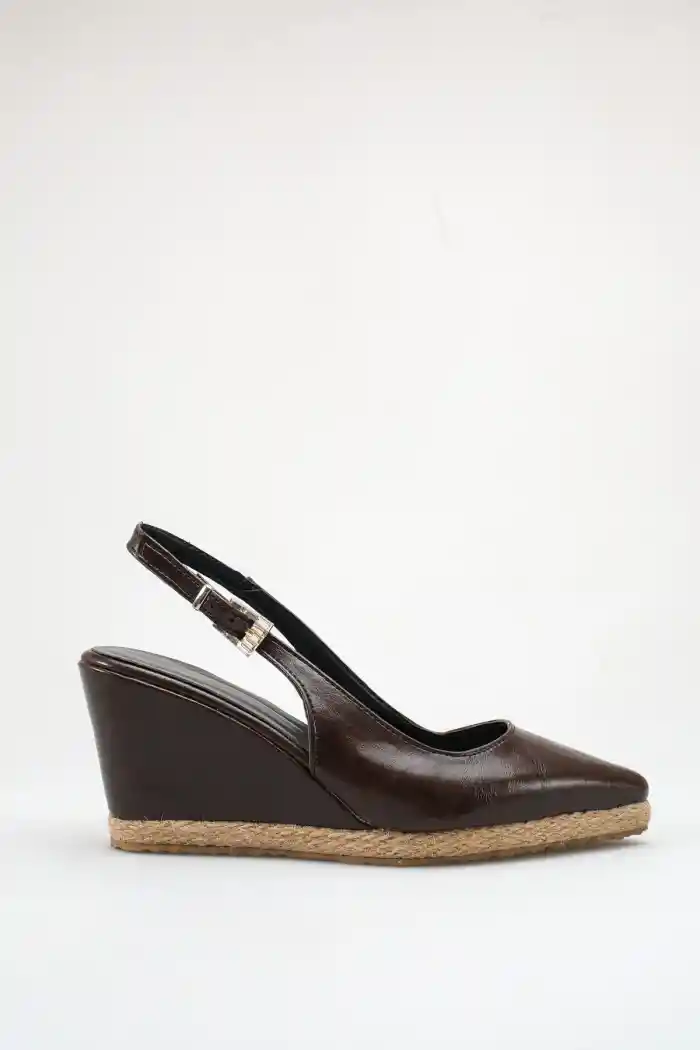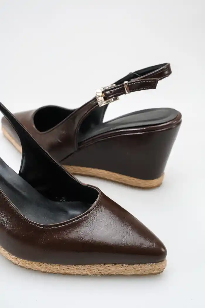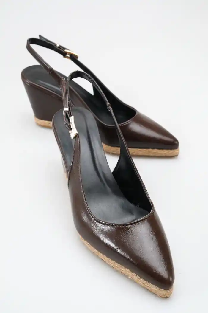 Kahve Rugan Kadın Sivri Burun Dolgu Topuklu Sandalet