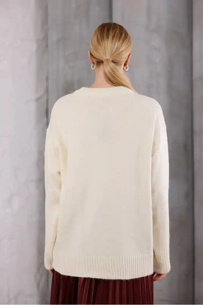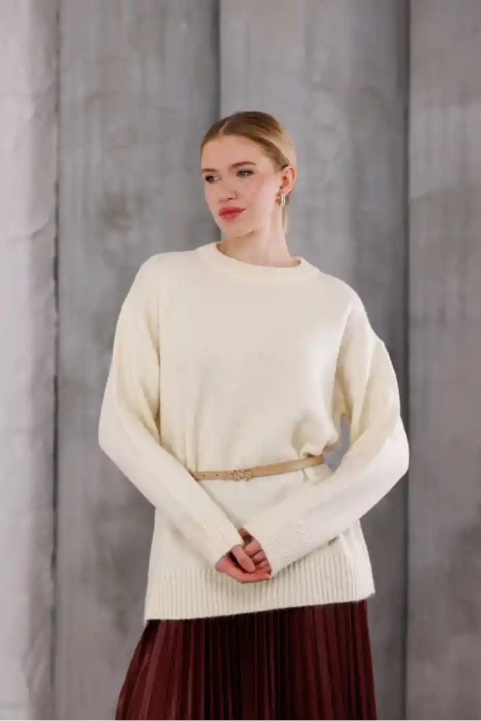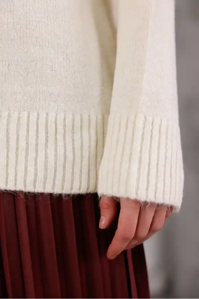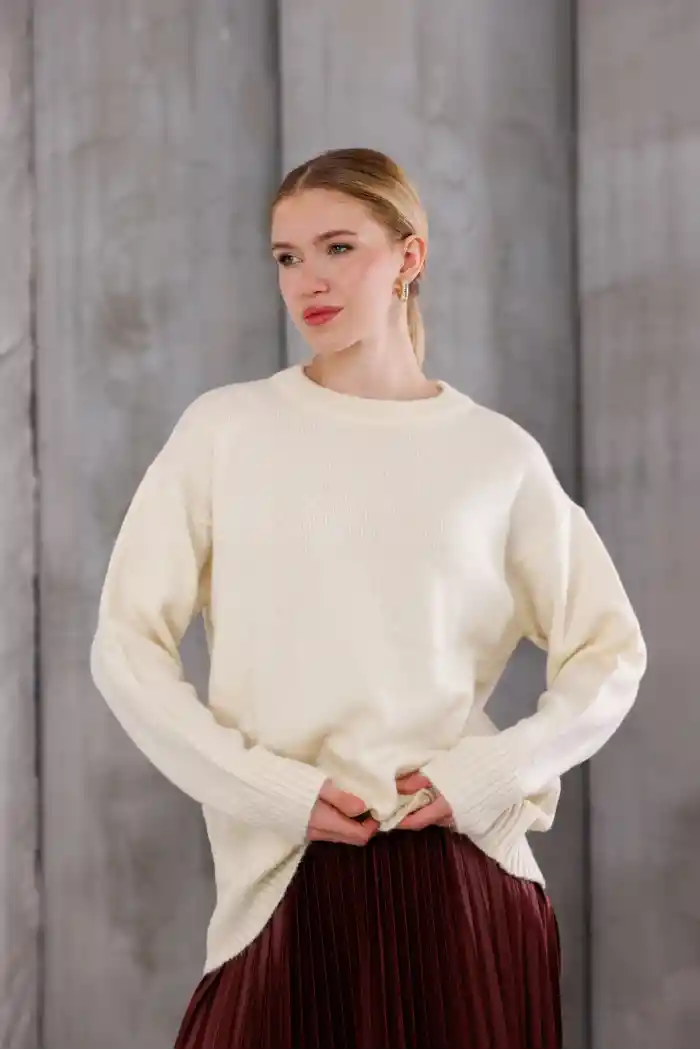 Krem Kadın Bisiklet Yaka Oversize Triko Kazak