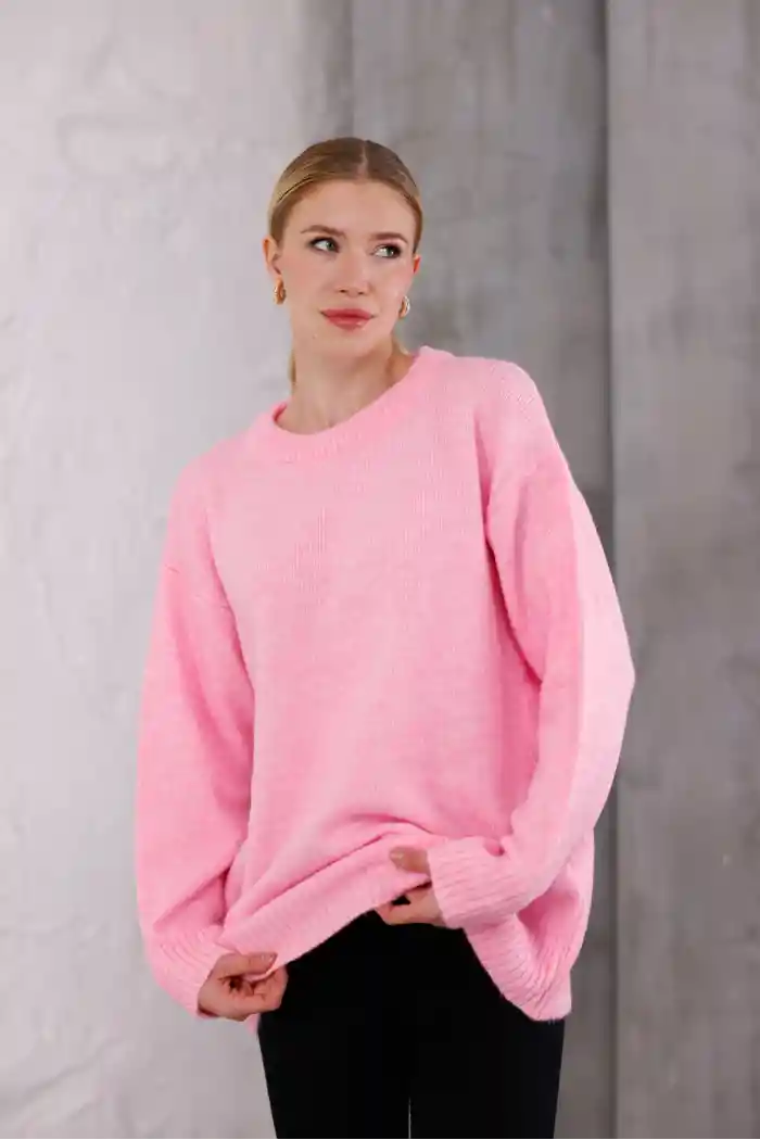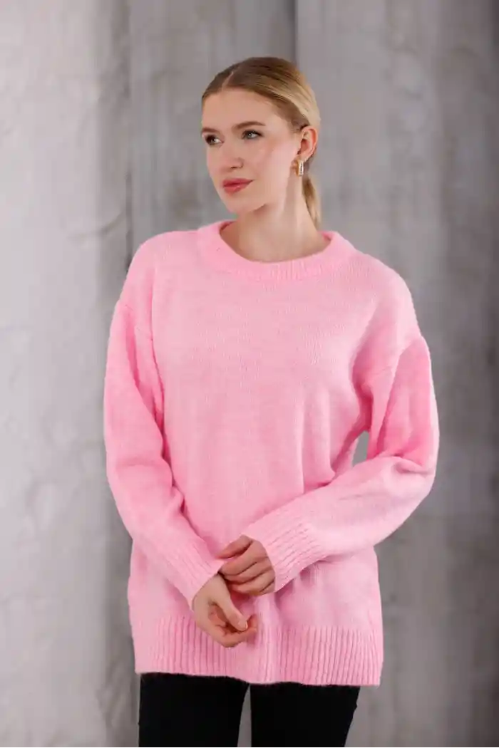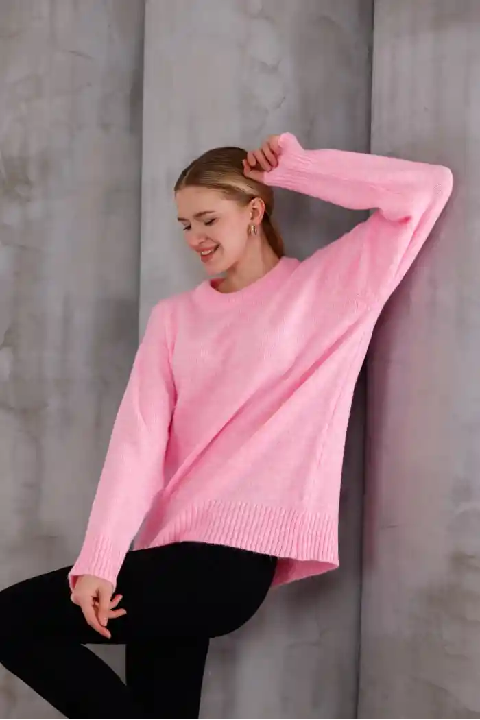 Pembe Kadın Bisiklet Yaka Oversize Triko Kazak