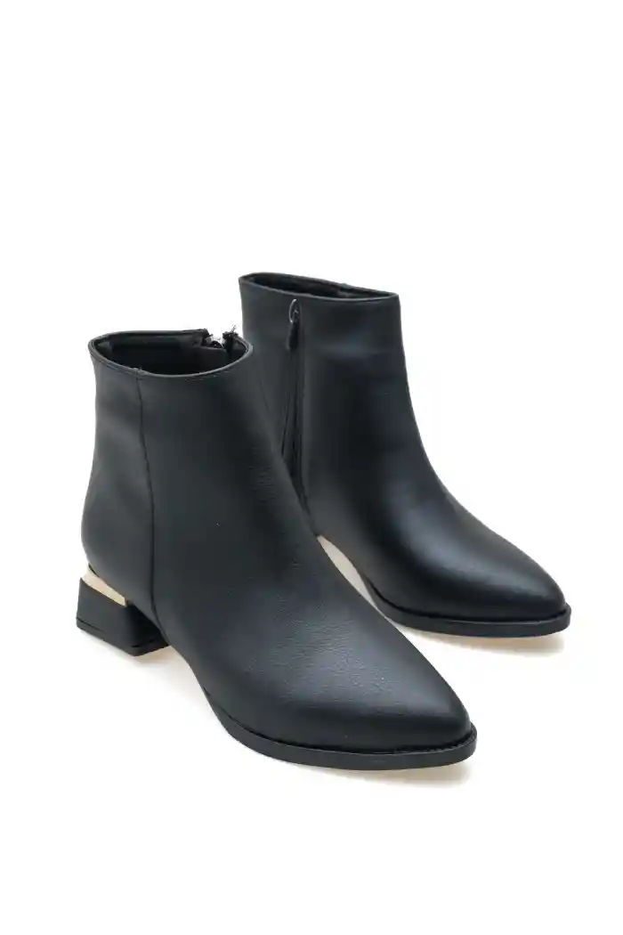 Siyah Cilt Kadın Altın Detaylı Topuklu Bot