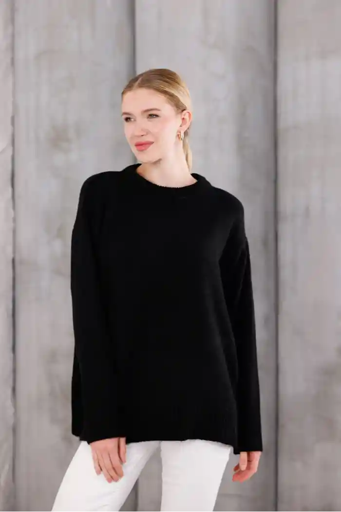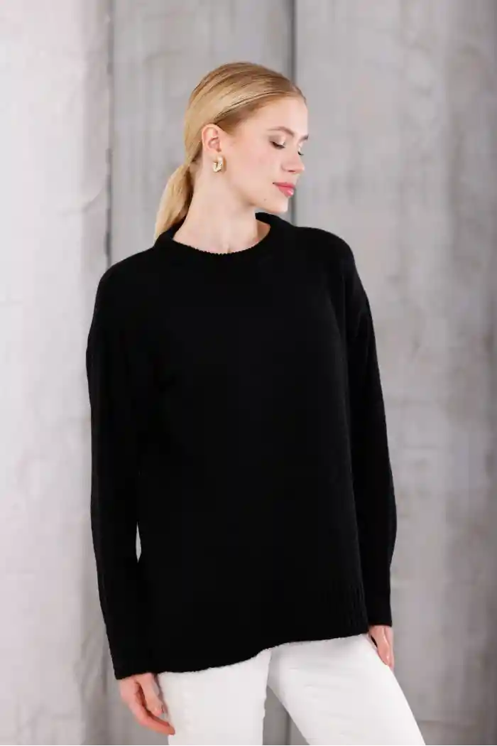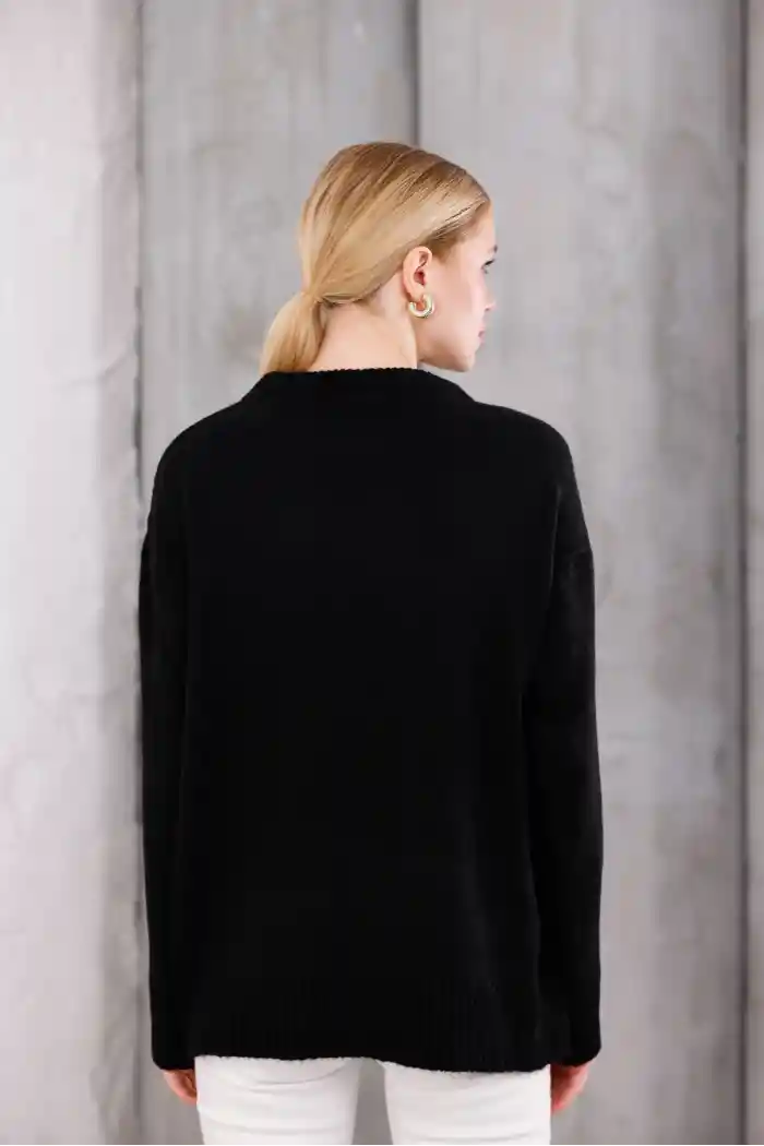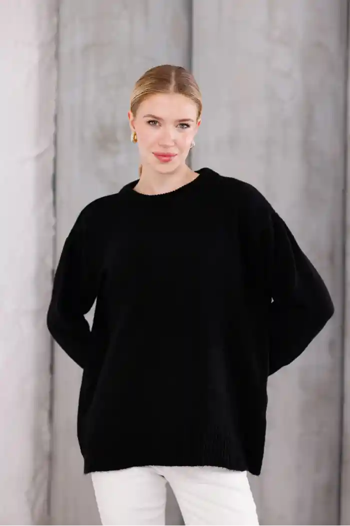Siyah Kadın Bisiklet Yaka Oversize Triko Kazak