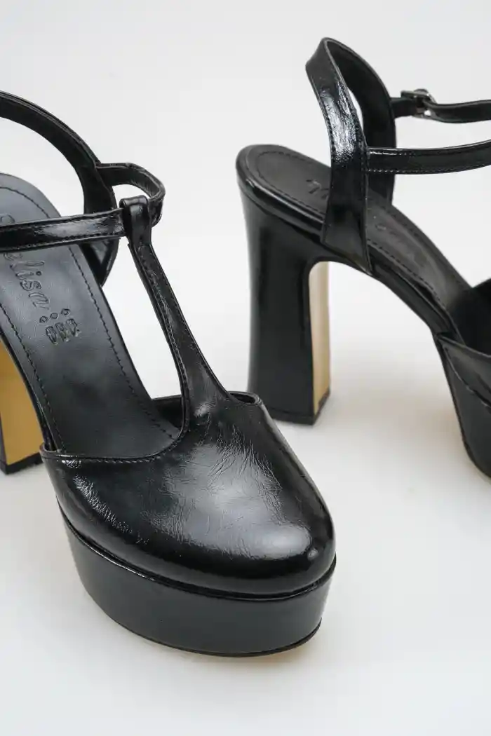 Siyah Rugan Kadın Uzun Topuklu Ayakkabı
