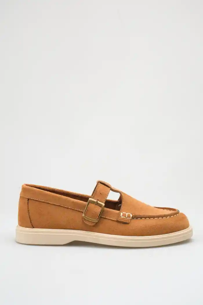 Taba Süet Kadın Kemerli Loafer Ayakkabı